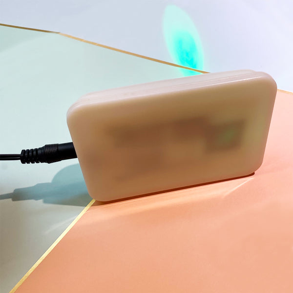 *Quantum waves are emitted from the white flat surface opposite the green light.